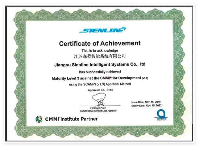 热烈庆祝江苏森蓝智能系统有限公司顺利通过CMMI(Capability MaturityModel Integration,即软件能力成熟度集成模型,以下简称CMMI)三级认证。